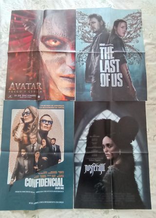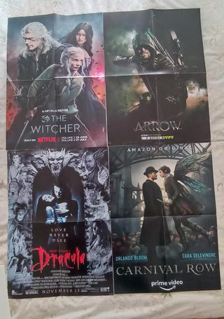 Conjunto de 16 pósters de películas. Precio del lote completo 22 euros. Se pueden adquirir sueltos al precio de 2 euros cada uno mínimo 6 unids. Se pueden combinar con otros anuncios de poster que tengo en mi perfil. Este anuncio incluye: Top Gun Maverick, Loki, IT, Welcome to Derry, Karate kid Legends, Nosferatu, Confidencial, Avatar fuego y ceniza, The Last of Us, El Especialista, El exorcista creyente, La profecia, Dune 2, Carnival Row, Drácula de Bram Stoker, Witcher, Arrow.