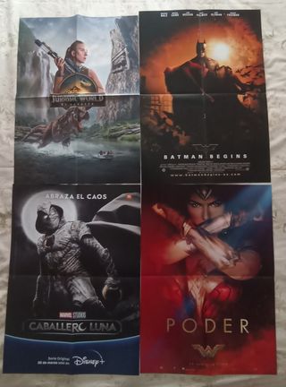 Conjunto de 16 pósters de películas. Precio del lote completo 22 euros. Se pueden adquirir sueltos al precio de 2 euros cada uno mínimo 6 unids. Se pueden combinar con otros anuncios de poster que tengo en mi perfil. Contenido de este anuncio: Caballero Luna, Jurassic World renacer, Batman begins, Batman y Robin, Los vengadores, Estado Eléctrico, Daredevil, Morbius, Millenium, Wakanda Forever, Depredador, Capitán América el primer vengador, Spiderman no way home, Los cuatro fantásticos 2025, Wonder Woman, Misión Imposible sentencia final.