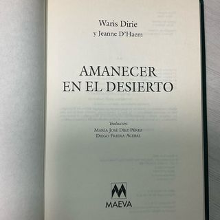 Es un relato autobiográfico y testimonial en el que Waris Dirie cuenta su propia vida, desde su infancia como pastora nómada en Somalia, su huida siendo adolescente, hasta convertirse en modelo internacional y activista por los derechos de las mujeres. Tapa dura. En perfecto estado. Sin sobrecubierta. 221 páginas. Año 2002.