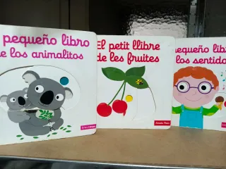 3 libros para descubrir con nuestros bebes, están en condiciones de desgaste por el uso, más que nada por fuera, por dentro están bien. Hay 2 en castellano y 1 en catalan