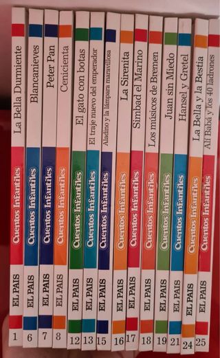 Serie ilustrada de El País para aprender los cuentos más tradicionales de una forma divertida para los más pequeños. Están disponibles libros de dos colecciones distintas; la gris y la blanca. De la blanca están disponibles los números 3, 4, 13, 17, 19, 21, 22 y 23. De la gris están los números 1, 2, 8, 9, 10, 11, 17, 18, 19, 21, 22, 23 y 31. Cada uno se puede comprar a 1€ pero cada lote de cinco se queda a 4€.