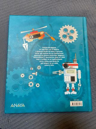 Libro con linterna para leer a oscuras. Ilumina las páginas de este libro con la linterna y después míralo de nuevo a oscuras: ¡verás que muchas ilustraciones se iluminan de manera misteriosa, mágica y sorprendente! Y descubrirás cómo un robot viejo y oxidado se va transformando poco a poco, con ayuda de sus amigos, en un robot nuevo y feliz.