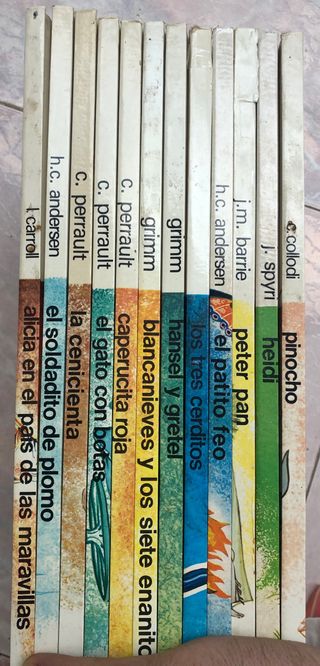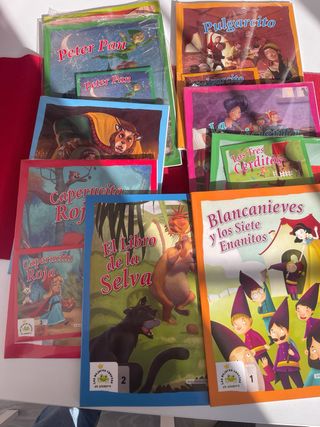 La aventura del zorro Un brujo de segunda Un niño es un niño Federico busca el bosque y otras historias Arriba, en el monte Superzorro Querida Blanca Quimera de oro Mágico verano Sabueso de los Baskerville Vendedor de noticias Simbad el marino Caso de la misteriosa epidemia del profesor La sorpresa del abuelo Cuentos para niños celosos Cuentos para niños vanidosos Jim Botón y Lucas el maquinista Robi, Tobi y el aeroguatutú Los guardianes del secreto Misterioso robo en Cebrathattan Peter Pan Los increíbles Bichos una aventura en miniatura Historias breves para leer Alfabeto de las 21 puertas Feo, bobo y malo El rey simpion Laberin