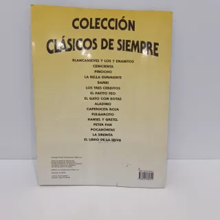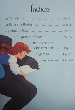 Incluye los libros de: la Bella y la Bestia, Alicia en el País de las Maravillas, la Sirenita, Cenicienta, Hansel y Gretel, el Soldadito de Plomo, el Flautista de Hamelin, el Gato con Botas, Pulgarcito y Caperucita Roja.