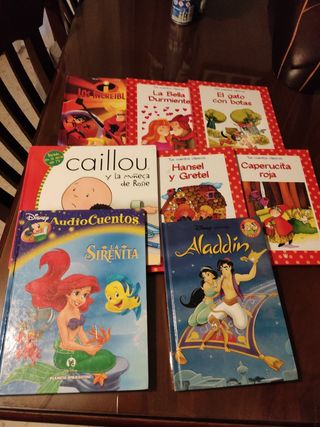 8Cuentos tapa dura Caillou,caperucita Roja,la sirenita,Hansel y Gretel,el Gato con botas,la Bella durmiente,Aladin,los increibles