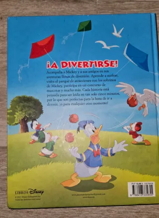 Vendo el libro de Disney "Cuentos de 5 minutos" protagonizado por Mickey, Minnie, Donald y toda la banda. Es la herramienta ideal para padres y madres: historias cortas, divertidas y con valores, diseñadas específicamente para leerse en solo 5 minutos. - Estado: Muy cuidado. Tapas duras y páginas impecables. - Contenido: Incluye aventuras variadas: surf, parques de atracciones, concursos de mascotas y más. - Ideal para: Fomentar el hábito de lectura en niños pequeños sin que se cansen. En la portada tiene una leve marca de uso en una esquina, por lo demás impecable.