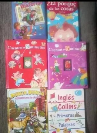Cuentos en 3 minutos (4€), El porqué de las cosas (5€), Ada magnífica científica (4€), Cuentos alemanes 2 (3€), Cuentos en 5 minutos (4€), 365 Historias (5€),Los primeros cuentos de...(4€), Números (2€), 12 cuentos clásicos (5€). 3 libros puzzle (3€),los demás 3€ cada uno. Si te los llevas todos 30€.