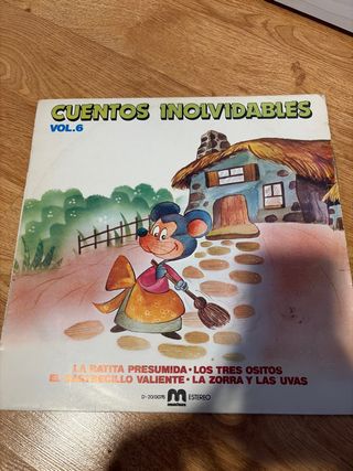 Disco de vinilo con cuentos infantiles. - Títulos incluidos: La Ratita Presumida, Los Tres Ositos, El Astrecillo Valiente, La Zorra y las Uvas. - Volumen 6. - Formato Estéreo.