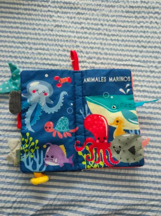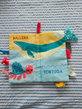 Cuento textil con animales del mar, diferentes texturas y sonidos, así como con diferentes colas de cada animal.