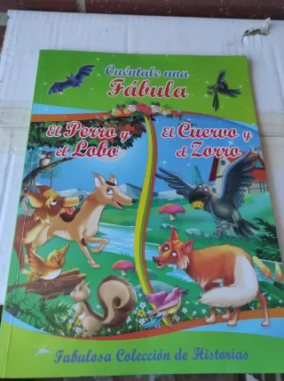 Contiene 2 fábulas el Perro y el Lobo y el Cuervo y el zorro. Cuentos con moraleja e ilustraciones coloridas. Ideal para niños
