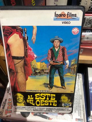 Película western Al Este del Oeste en formato VHS. - Protagonizada por Fernando Esteso. - Incluye a Antonio Ozores, Conrado San Martín y Adriana Vega. - Dirigida por Mariano Ozores.