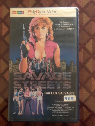 Película en formato VHS de Savage Streets (Calles Salvajes). - Portada en español. - Incluye la película en inglés y español.