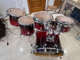 Batería en perfecto estado , la batería viene con los toms sin perforar, soporte flotante, parches remo pinstripe para cada parche,Remo costes emperor para la caja. El tom más grande es Santa Fe contramarcado y la batería es marca Basix.hardware y fabricación cuidadosa con herrajes de buena calidad.Bombo 22”x18” 10 herrajes de afinación.Tom 1: 10”x6.5” 6 herrajes de afinación.Tom 2: 12”x7.5” 6 herrajes de afinación.Tom 3: 14”x13” 8 herrajes de afinación.Tom 4: 16”x13” 8 herrajes de afinación.Caja : 14”x 5”. 10 herrajes de afinación (Se entrega sin base de caja. Se pueden anadir mas elementos. Tengoplatillos doble pedal aparte)