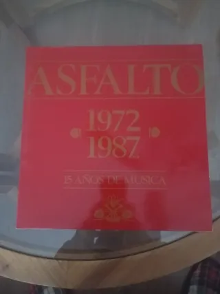 Disco de vinilo 15 Años de Música del grupo Asfalto, que abarca el periodo de 1972 a 1987. - Portada roja con letras doradas. - Incluye el logo del grupo.