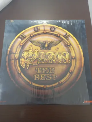 Edición en vinilo del álbum Rock the Best de Saxon, lanzado en 1987. - Portada con diseño circular dorado y águila. - Incluye el título The Best en la parte inferior.