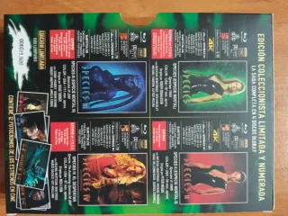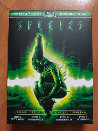 Colección completa de la saga Species en Blu-ray. - Incluye las 4 películas: Species, Species II, Species III y Species IV. - Edición especial limitada y numerada. - Contiene 12 postales y extras.