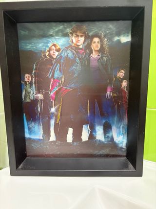 Cuadro decorativo con efecto 3D de Harry Potter y sus amigos. - Diseño inspirado en la saga. - Marco negro.