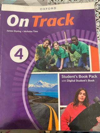 Libro On Track 4 (Oxford). No está escrito. Presenta desgaste por el uso (portada y esquinas), pero está completo y perfectamente utilizable.