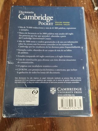 Diccionario para Estudiantes de Inglés, CAMBRIDGE POCKET. De inglés a español y viceversa. 70.000 Traducciones y 61.000 Palabras, expresiones y ejemplos... Guia de conversacion para afrontar con exito diversas situaciones de comunicación. 32 Páginas con vocabulario temático a color. MUY PRÁCTICO Y UTIL. COMO NUEVO. Hago envíos muy bien empaquetados.