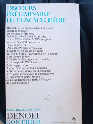Discours préliminaire de l'Encyclopédie Alembert, Jean Le Rond d' el libro está en francés se hacen envíos no intercambio tengo más libros en mí perfil