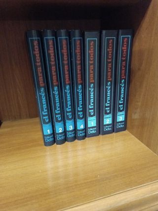 - Colección de libros "El francés para todos" de la editorial Delta, con sus correspondientes cassettes. - 4 tomos de libros y ejercicios y 3 archivadores con un total de 24 cassettes.