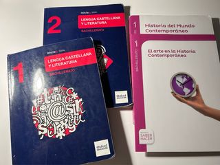 Lote de varios libros tanto 1° y 2° de bachillerato, algunos específicos para Bachillerato de artes. Usados y con algunas anotaciones en los libros de lengua, historia y filosofía. (Mirar las fotos) El resto de libros están como nuevos Incluye: - Lengua Catellana y literatura 1° bachillerato 7€ - Lengua Catellana y literatura 2° bachillerato 7€ - Historia del mundo contemporáneo (incluye de Arte en la historia contemporánea) 7€ - Filosofía 7€ - Dibujo artístico 1. 8€ - Cultura audiovisual 1. 8€ - Diccionario Francés-Español Español-Inglés 5€