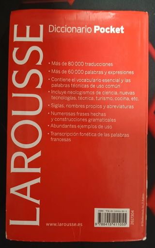 Diccionario de Francés de Larousse (pocket). Está en perfecto estado, sólo se ha usado una vez. No está escrito ni subrayado.