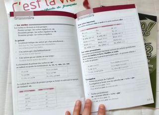 Pack de dos libros de consulta rápida gramatical en francés de diferentes niveles (correspondería B1 y B2) perfecto para consultar sus difíciles tiempos verbales, y un portfolio de comprensión oral y lectora.