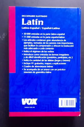 Diccionario editorial vox de latin-español, que se utiliza en bachillerato para traducciones