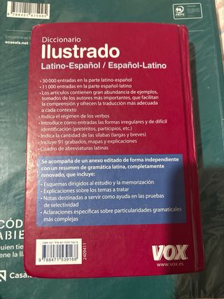 Vendo diccionario ilustrado Latino-Español / Español-Latino de la marca VOX. Ideal para estudiantes, curiosos del latín o coleccionistas.