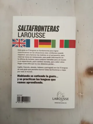 Diccionario/libro Salta fronteras Larousse Guía para viajar, inglés francés, alemán, italiano, y portugués. Frases básicas para viajeros en muchos idiomas.