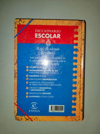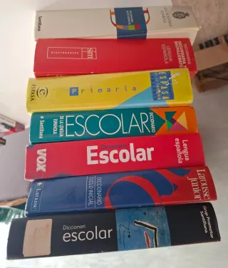 Diccionarios escolares en español a 5€ unidad dime cual quieres y te hago publicación 978-84-294-0547-7 Diccionario del estudiante real academia española, editorial santillana Isbn 978-84-675-0831-4 Diccionario de la lengua española , editorial SM Isbn 978-84-239-9424-4 Diccionario escolar de la lengua española , editorial Espasa Isbn 978-84-294-3693-8 Diccionario escolar de la lengua española , editorial santillana Isbn 978-84-9974-034-8 Diccionario escolar de la lengua española , editorial vox. Isbn 978-84-8016-028-5 Diccionario ciclo inicial editorial Larousse Isbn 978-84-7911-275-1 Diccionario escolar editorial santilla