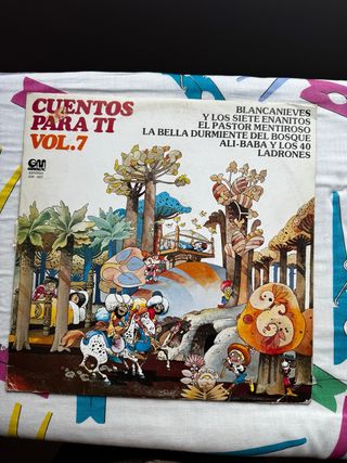 Disco de vinilo con cuentos clásicos. - Cuentos incluidos: Blancanieves y los Siete Enanitos, El Pastor Mentiroso, La Bella Durmiente del Bosque, Ali-Baba y los 40 Ladrones. - Edición: Cuentos para Ti Volumen 7. - Sello discográfico: GM.