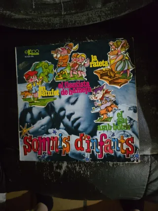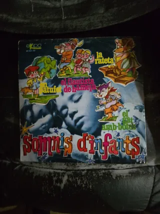 Disco de vinilo LP con cuentos infantiles. - Título: Somnis d'infants - Incluye las historias: La rateta, El flautista i el patufet de hameja, El gat amb botes. - Sello discográfico: Elipo - Referencia: 66.7034 HN