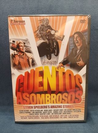 Temporada 1 de Cuentos Asombrosos (Amazing Stories) de Steven Spielberg en DVD. - Incluye 24 episodios. - Contiene 4 discos. - Reparto: Kevin Costner, Kiefer Sutherland, Gregory Hines, Sid Caesar, Dom DeLuise, Harvey Keitel, Sondra Locke, Beau Bridges, Seth Green, Charlie Sheen, Joe Pantoliano, Mark Hamill. - Directores: Steven Spielberg, Peter Hyams, Burt Reynolds, Bob Clark, Clint Eastwood, Joe Dante, Martin Scorsese, Paul Bartel, Irvin Kershner, Phil Janou, Timothy Hutton.