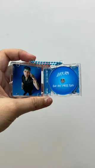 Mini CD del artista Luck Ra, del álbum Que Nos Falte Todo con tecnología NFC que reproduce el disco en Spotify al acercarlo a tu teléfono. - Incluye packaging con tarjeta personalizada. - Incluye llavero con cuentas azules. - 100% Fan-made EDICIÓN LIMITADA Solo 10 unidades