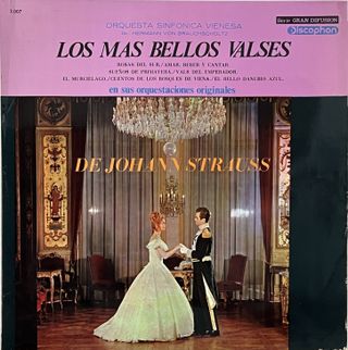 Disco de vinilo LP con Los Mas Bellos Valses interpretados por la Orquesta Sinfónica Vienesa. - Dirigido por Hermann Von Brauchscholtz. - Incluye Rosas del Sur, Amar, Beber y Cantar, Sueños de Primavera, Vals del Emperador, El Murciélago, Cuentos de los Bosques de Viena y El Bello Danubio Azul. - Presentado en sus orquestaciones originales.