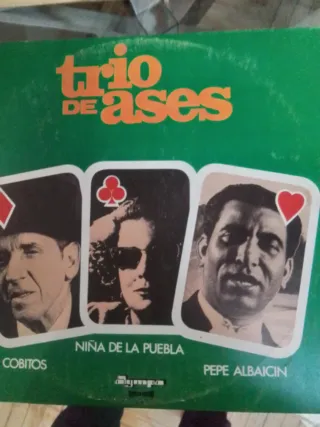 Disco de vinilo del Trio de Ases. - Incluye Cobitos, Niña de la Puebla y Pepe Albaicin. - Portada con diseño de cartas de póker.