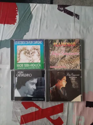 Se vende lote de 4 CDs de Felipe Campuzano compuesto por: Los Rocieros con Felipe Campuzano: Madre Tierra Andalucía (Homenaje al Maestro Oliva); Flamenco de Felipe Campuzano "Canta Beni de Cádiz"; Andalucía Espiritual; Suite Espiritual. Cajas, carátulas y discos en perfecto estado. Precio unidad 3,5 € lote completo 12 €. SE PUEDEN COMBINAR CDs y DVDs DE DISTINTOS LOTES. MÁS MÚSICA Y PELICULAS EN MI PERFIL. SÓLO ENTREGA EN MANO EN VARIOS PUNTOS DE MADRID Y PAGO EN EFECTIVO. TENGO MUCHO MATERIAL SIN PUBLICAR PREGUNTA SIN COMPROMISO.