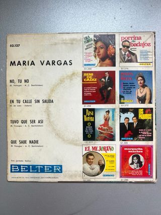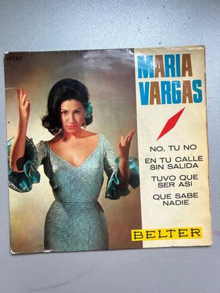 🎵 María Vargas – Vinilo 7" Vendo vinilo de 7 pulgadas de María Vargas, una de las grandes voces del flamenco. Cante poderoso y elegante, con todo el arte de la tradición andaluza. 💿 El disco está en buen estado. La funda muestra algo de desgaste, pero mantiene bien la presentación. Ideal para coleccionistas de flamenco o quienes quieran descubrir una artista imprescindible del género. 📍 Entrega en mano en Valencia o El Puig 📍 Envío por Wallapop