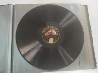 Colección con 2 álbums originales para discos de gramófono de la marca “La Voz de su Amo / Compañía del Gramófono S.A.E.”. Incluye 21 discos originales de pizarra de 78 rpm de distintos sellos históricos: Gramófono, La Voz de su Amo, Parlophon, Pathé, etc. 10 de 12" y 11 de 10". Uno de los álbum tiene 3 fundas que presentan anotaciones en bolígrafo y una funda está parcialmente rota. El estado general de los discos es bueno, con buen brillo y sin defectos. Hay un par con muescas en el extreml y 1 roto sin estar separado.