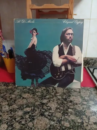 Disco de vinilo del álbum Elegant Gypsy de Al Di Meola. - Género: Jazz. - Portada con diseño artístico.