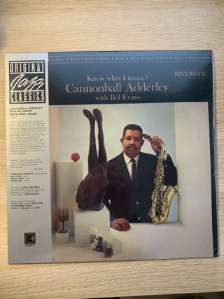Disco de vinilo Know What I Mean? de Cannonball Adderley con Bill Evans. - Grabado originalmente en 1961. - Reedición de Original Jazz Classics. - Incluye temas de jazz clásico.