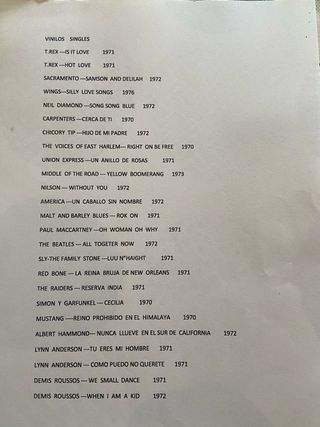 Singles en Vinilo a 2,5€ si compras 10 o más. Pedido mínimo de 25€ Los vendo sueltos pero más caros. Combina con otros articulos de mi perfil. Algunos con texto escrito; pregunta por el estado. Patricia Bert Kampfert Max Greger Julio Iglesias De Niña a Mujer Los Carnevalitos Ching Ching African Beat Pat Boone On Mike Samba Blue canta Marilda David Bowie Fashion DJ Absolute Beginners Mick Jagger Dancing in the Street Nat King Cole a mis amigos Lou Reed September Song Mary Frost Latin Lover Paul Anka Paul Paula en la navidad Georges Jouvin Banda sonora original Oscar 91 Marty Robbins El árbol del ahorcado La Trinca Hermanas Sisters