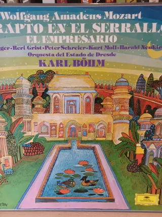 Disco de vinilo de El Rapto en el Serrallo de Wolfgang Amadeus Mozart, bajo la dirección de Karl Böhm. VINILOS EN PERFECTO ESTADO - Interpretado por la Orquesta del Estado de Dresde. - Artistas: Reri Grist, Peter Schreier, Kurt Moll, Harald Neukirch. - Título original: Die Entführung aus dem Serail.