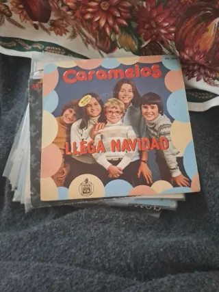 Disco de vinilo del grupo Caramelos con el título Llega Navidad. - Portada con diseño festivo. - Sello discográfico Hispavox.