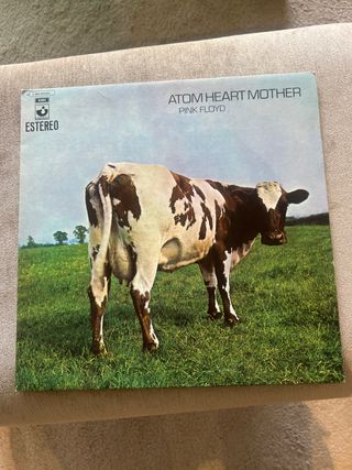Disco de vinilo de Pink Floyd, Atom Heart Mother. - Portada icónica con una vaca en un prado. - Edición en formato Estéreo.