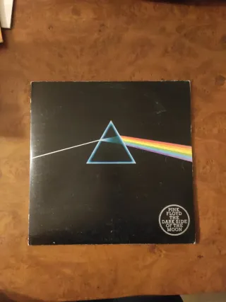 Este es el icónico álbum The Dark Side Of The Moon de Pink Floyd. - Portada con el prisma y el haz de luz. - Incluye el disco de vinilo. - Made in Spain (1973) - Near Mint