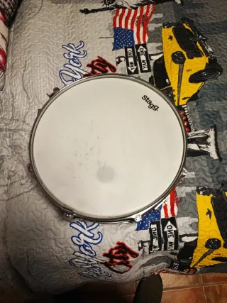 Tambor Stagg con muy poco uso. Se vende tambor stagg prácticamente nuevo fue un regalo y no se le ha dado uso se regalan dos baquetas unas nuevas a estreno - Color blanco. - Aro metálico.