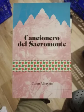 Libro Cancionero del Sacromonte de Curro Albayzín. - Recopilación de canciones. - Ilustraciones en tonos rosas y azules.